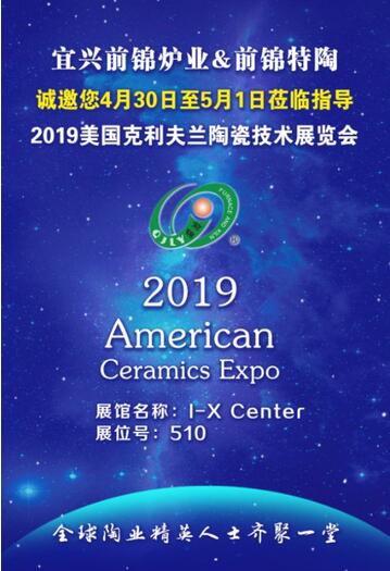 | 江蘇前錦特種陶瓷燒結(jié)爐參加2019美國克利夫蘭陶瓷技術(shù)展覽會 | |